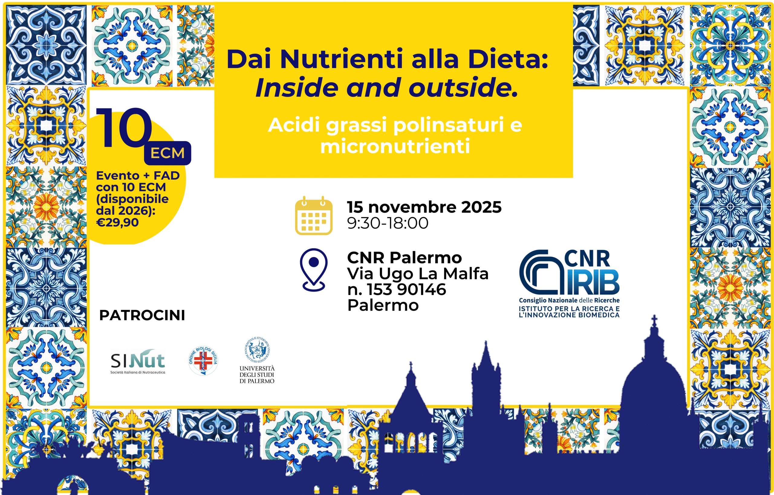 Evento ECM a Palermo il 15 novembre: Dai Nutrienti alla Dieta - inside and outside. Acidi grassi polinsaturi e micronutrienti.