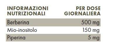 Estratto di frutto di berberina, mio-inositolo, agente di rivestimento: idrossipropilmetilcellulosa (HPMC); estratto di pepe.