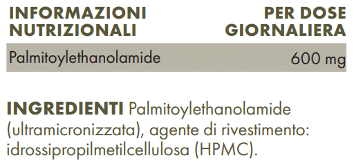 Palmitoiletanolamide (ultramicronizzata), agente di rivestimento: idrossipropilmetilcellulosa (HPMC).