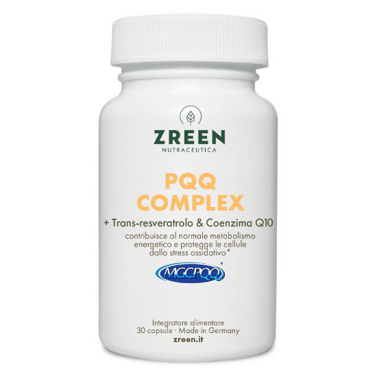 La PQQ (pirrolochinolina chinone) si trova nei mitocondri e contribuisce in modo significativo alla produzione di energia. Grazie all’efficace combinazione con un’alta percentuale di Q10, resveratrolo, vitamina E vitamina B6 bioattiva protegge le cellule dallo stress ossidativo.